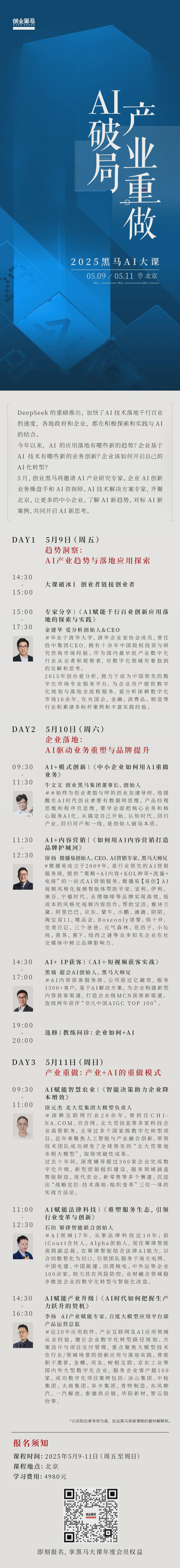 参加5月黑马AI大课,我们一起走出去、看对趋势、找对人、做对事。